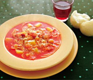 野菜や豆、パスタ入りのボリュームで、おなかも大満足!