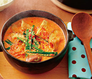 豆乳は、体の機能を整えてくれるイソフラボンを含むヘルシー飲料。豆乳を加えることで、ピリッとした辛みを優しい味わいに。