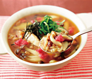 きのこと梅のヘルシー雑穀スープ