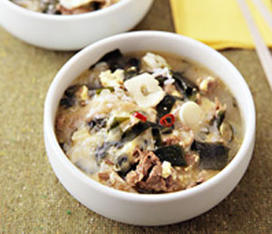韓国では産婦さんに必ず飲ませるというくらい栄養価の高いわかめスープを雑炊に!