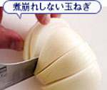 玉ねぎは中央に向かって串切りに。繊維に沿って切るようにすると煮崩れしにくくなる。 |