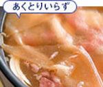- ②火にかける前の鍋に合わせだしをつくり、①と肉を入れる。