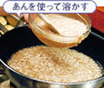 練りごまは、鍋のあんを使って少しずつ溶かしていくのがポイント。 |