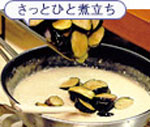 食材のうまみを引き出すため、火にかける前に合わせだしの中へ入れる。 |