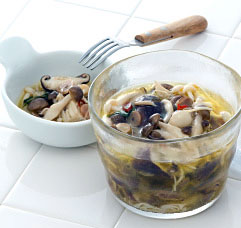 キノコのマリネを作りおきしておけば、いつでも簡単にできるパスタをご紹介します。マリネはソースと一緒に使うことで、キノコの旨味がアップします。炒めたチキンやキャベツなど、ほかの具材を加えてもとってもよく合います。酢の酸味が食欲をそそる、あっさりとしたレシピです。