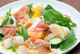 ピクルスと生ハムのカラフルなゴージャスサラダ