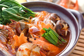 お好みの具材と鶏ガラスープのいつものお鍋に、好きな量のソースを加えるだけで赤いスープのピリ辛鍋に。海鮮鍋だけでなく、鶏肉や豚肉などのお鍋にもよく合います。お好みでキムチを加えれば、より一層コクが増します。お子さまが一緒のときには、取り分けてからソースを加えれば家族みんなで楽しめますね。