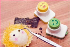 定番のシンプルなおにぎりも、簡単なデコレーションで楽しい似顔絵風のお弁当になります。家族の表情を思い浮かべながらみんなでわいわいつくれば、お弁当づくりも楽しいイベント。市販の海苔用パンチを使えば、難しそうな海苔の切り抜きも手軽にできます。