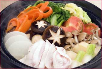 - ③野菜、肉を食べやすいひと口サイズの大きさに切り、鍋に盛り付ける。