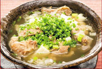 - ④別の鍋にお湯(400cc)を沸かし、Aを加えてだし汁をつくり、木綿豆腐、③の牛スジと牛スジの煮汁、長ネギ、ゆずコショー、ブラックペッパーを入れて火にかける。