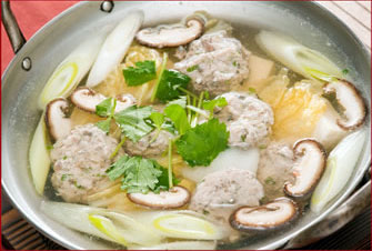 - ⑤つみれの表面の色が変わってきたら、長ネギ、白菜、しいたけを入れ、しばらく煮込む。アクが出てきたら、その都度取り除く。