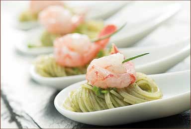 大葉で手軽に!オードブルパスタ。大葉のジェノベーゼ風ソースを、細麺パスタにたっぷり絡めて。オードブルにぴったりで、オシャレなひと口サイズのレシピを紹介します。