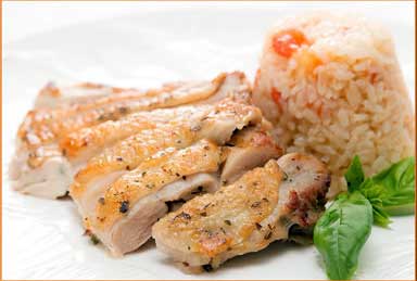 - ハーブチキン トマトライス添え