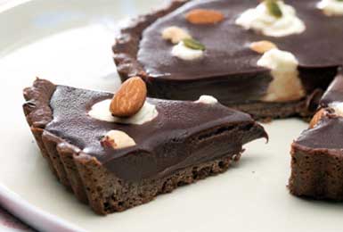最初に絞り出す生クリームがアクセント。泡立てた生クリームをタルト生地に絞り出してから、溶かしたチョコレート液を注いで冷やし固めれば、完成。タルトのサクサク感とやわらかなチョコレートの歯応えが絶妙です。