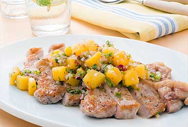 甘酸っぱいフルーツソースがBBQやパーティーで活躍!豚肉のソテー マンゴーサルサソース