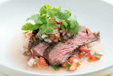マリネして焼いた柔らかい牛肉にさわやかなサルサをのせてサラダ感覚で!批評家に酷評された翌朝、カールはレストランの厨房で新メニューを試作する。そのひとつがカルネアサダ。味見した部下たちは「激ウマです」「完璧です。スパイスが絶妙!」と、絶賛。
