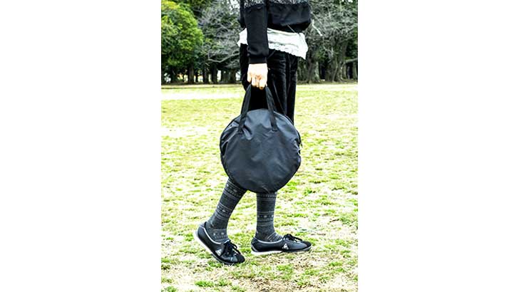 たたんでケースにしまうとこのくらい小さいしとても軽いので、持ち運ぶのも苦になりません。インターネットで「サッカー ミニゴール 折りたたみ」などのキーワードで検索するといろいろ出てくるのでチェックしてみてください。