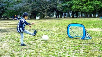 休みの日にはサッカーボールを持って公園に行っていましたが、ボールだけではやっぱり物足りない。それで買ってみたのが折りたたみ式のミニゴールです。