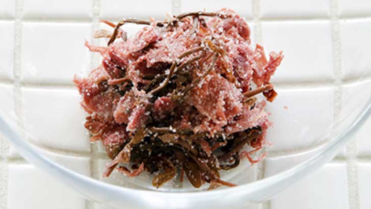 ぬるま湯に2〜3分さらして塩気を落とします。お菓子などに使う場合はしっかりと塩を抜きますがご飯の場合は残った塩気もおいしいので数分さらせば十分です。