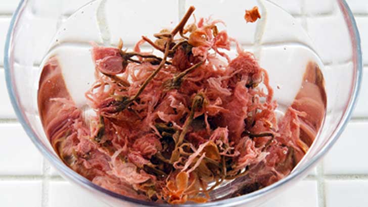 今回は、桜花の塩漬けを使ってつくる、ほんのりピンク色のおにぎりをご紹介します。