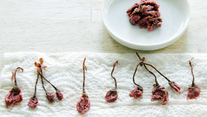 桜花の塩漬けは10gほど使います。おにぎりの飾り用と、混ぜ込み用です。桜花の量はお好みでかまいません。もっと多めでも大丈夫。
