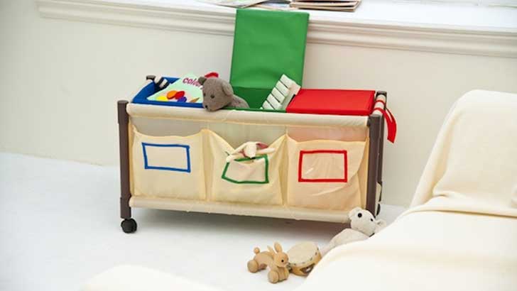 その仕組みさえ飲み込めれば、子どもは自ら片付けるようになるはず。それぞれの容れ物に「ゲーム機」「ブロック」など名札シールを貼れば完璧です。
